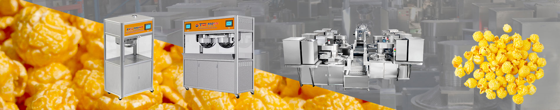 Tam otomatik endüstriyel patlamış mısır üretim hattı, otomatik patlamış mısır makinaları, konveyörler ve döner soğutma ve eleme tamburundan oluşmaktadır. İnsansız üretim hattı, bir operatörün aynı anda birden fazla patlamış mısır makinasını kontrol etmesine imkân tanır. Tüm işlem tamamen otomatiktir ve patlama süresi, sıcaklık ve karıştırma hızı dahil olmak üzere tüm işlemler PLC kontrol sistemi tarafından yönetilir.
